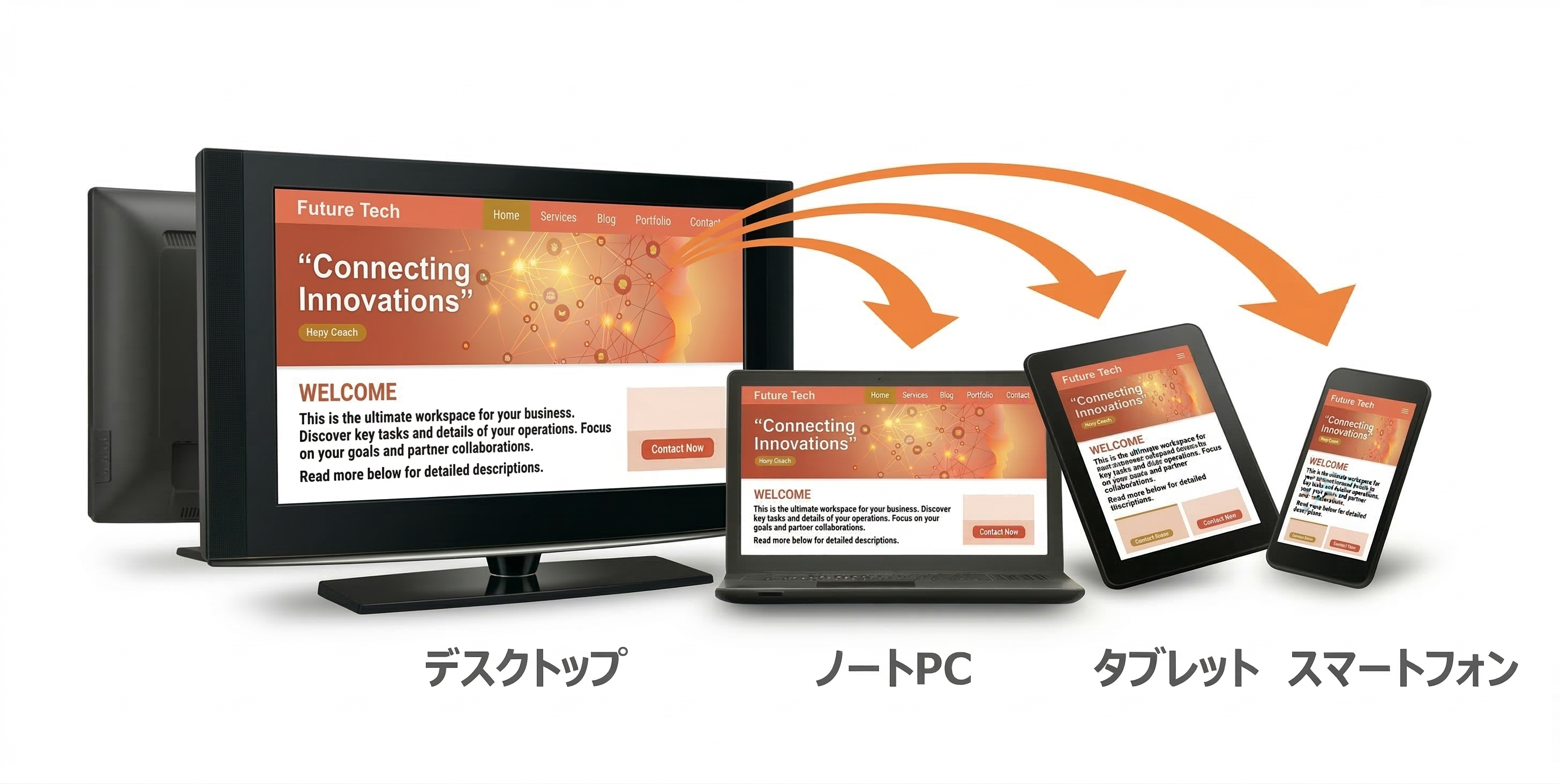 このように、共通のHTMLとデバイスごとに調整されたCSSを組み合わせることで、さまざまな画面サイズに対応したWebサイトを実現するのがレスポンシブデザインの基本的な仕組みです。