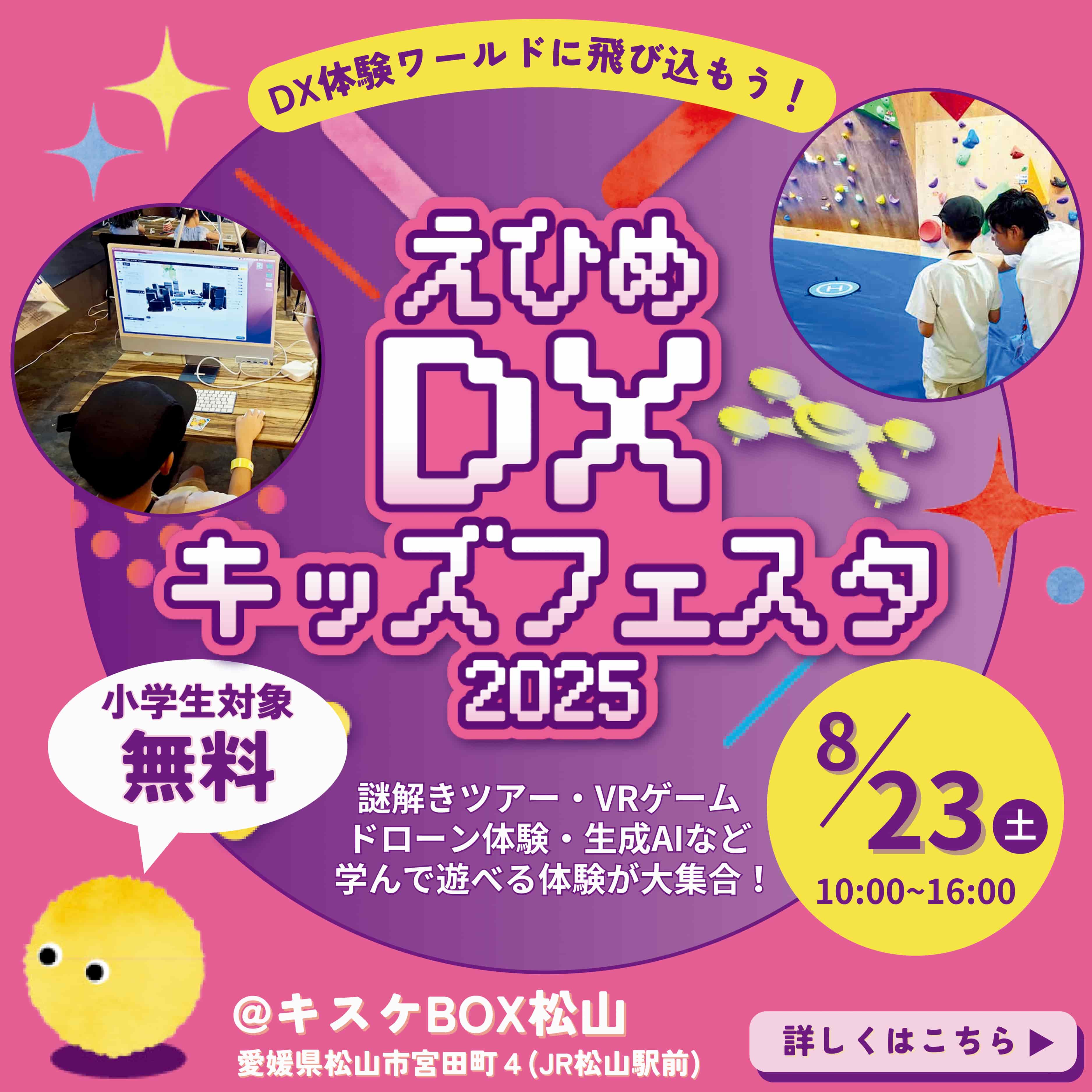クライアントワークの時に、見て作るだけじゃない、与えられたものだけで作ってはだめ、もっとターゲットを見定めてユーザーと向き合うことが大事と言われたことは、今も残っています。えひめDXキッズフェスタのバナーを作らせていただいたこともトライして良かったなって思ってます。本当に使われる案件だから、頑張ろうって気合い入りましたね。