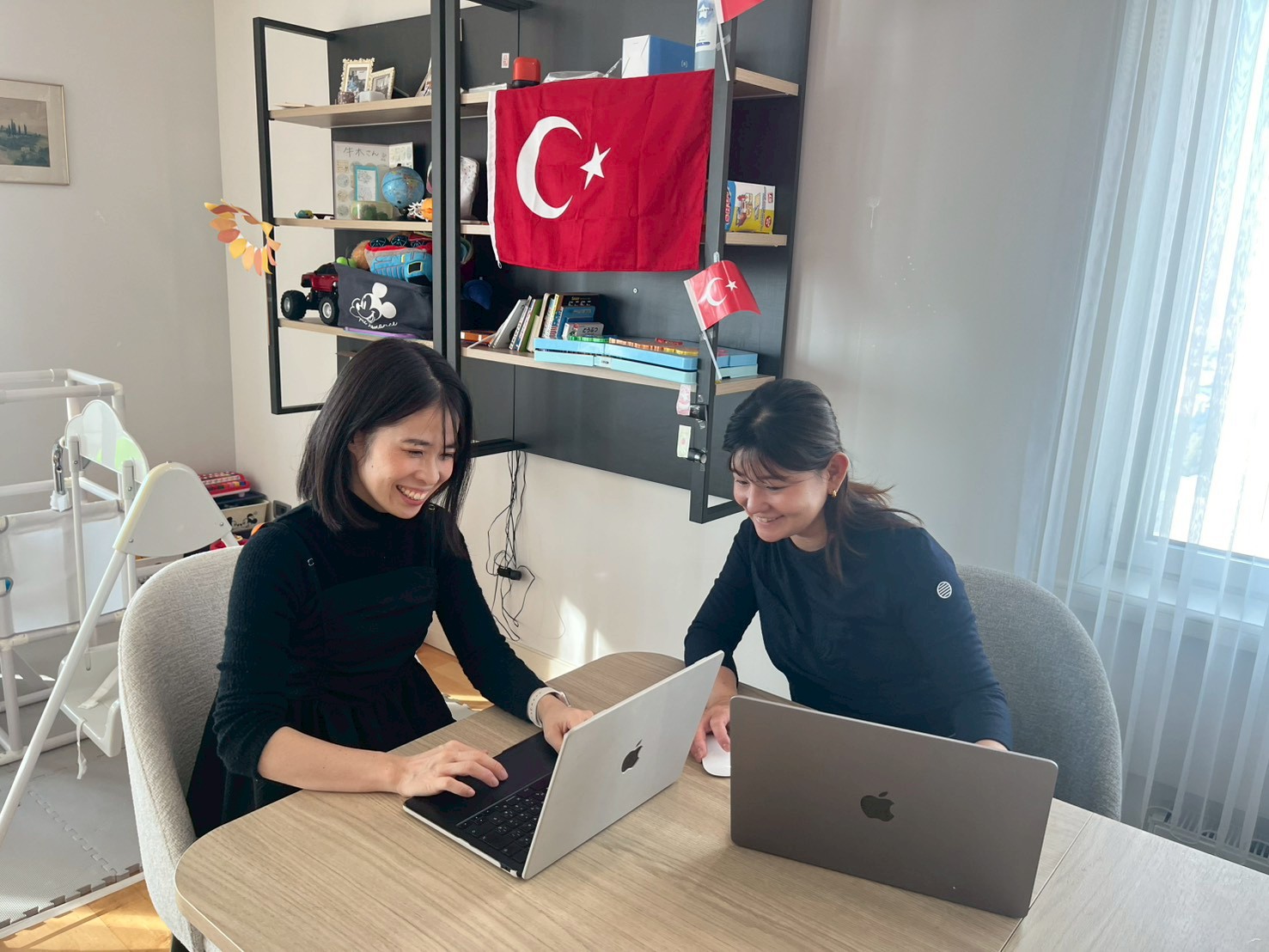 今回お話を伺ったのは、デジタルハリウッドSTUDIO自由が丘「Webデザイナー専攻 主婦・ママクラス」卒業生の 飯田綾子さん(日本在住・写真左)と牛木紗也佳さん(トルコ・イスタンブール在住・写真右)です。