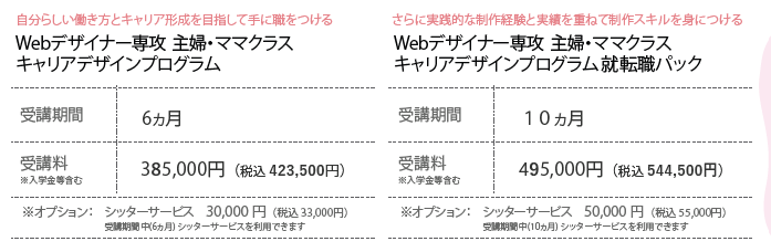 (Webデザイナー専攻 主婦・ママクラス キャリアデザインプログラムの場合)