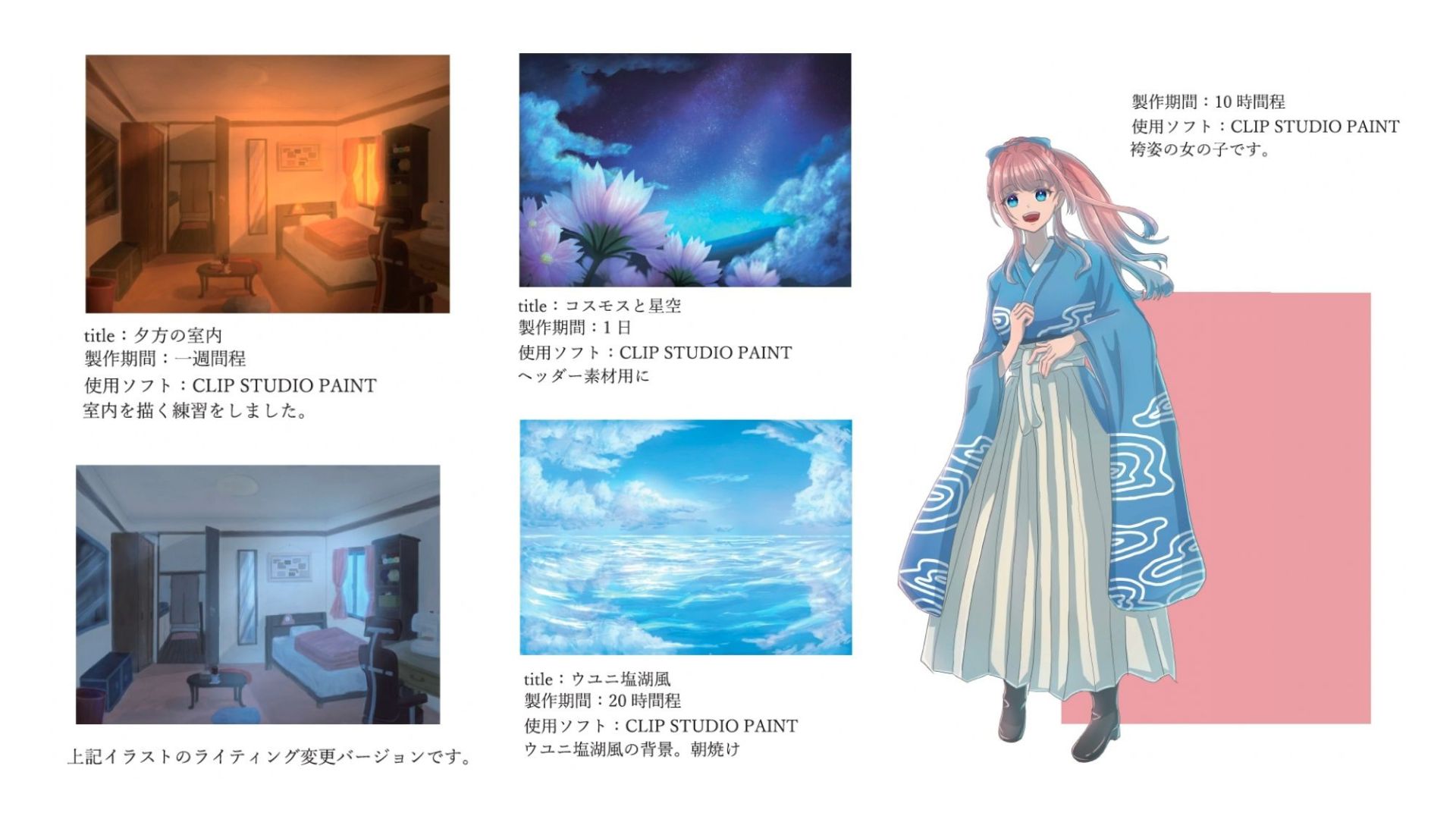 交流タイムには、より私の事を知ってもらえるように別途、今まで描いてきたイラスト資料も用意したりしました。