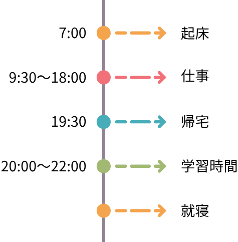 家に帰るのが19時半で、夕食を済ませてから20時〜22時の1〜2時間を学習にあてていました。
