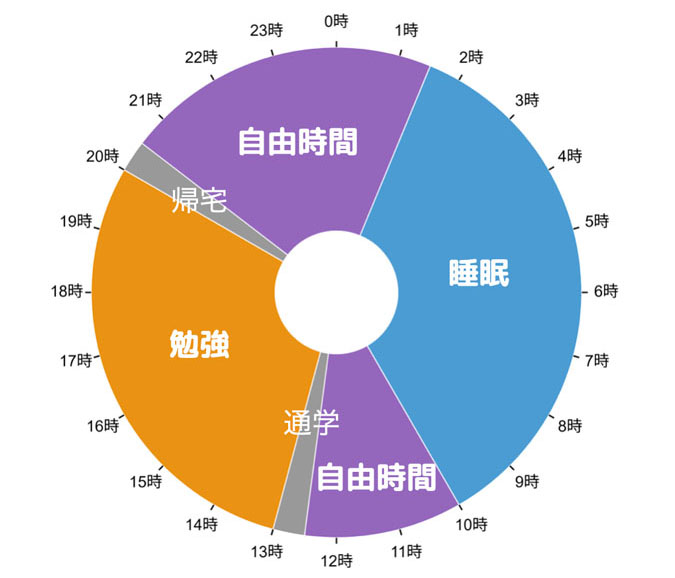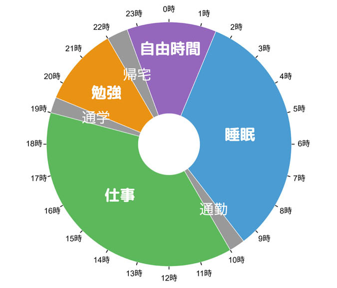 ■平日(火~金曜日):仕事終わりに2時間、勉強