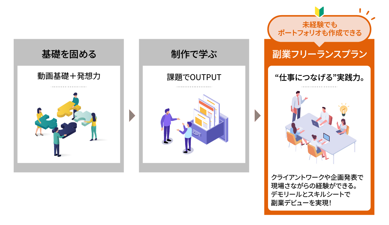 卒業後すぐに動画クリエイターとして仕事・収入を得れるよう