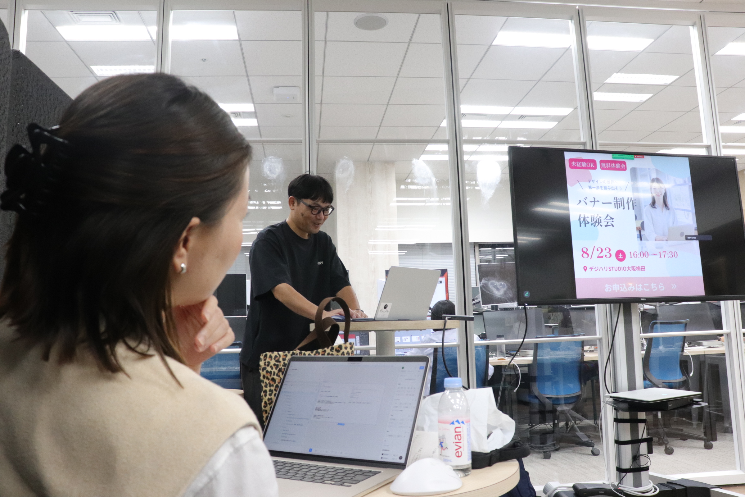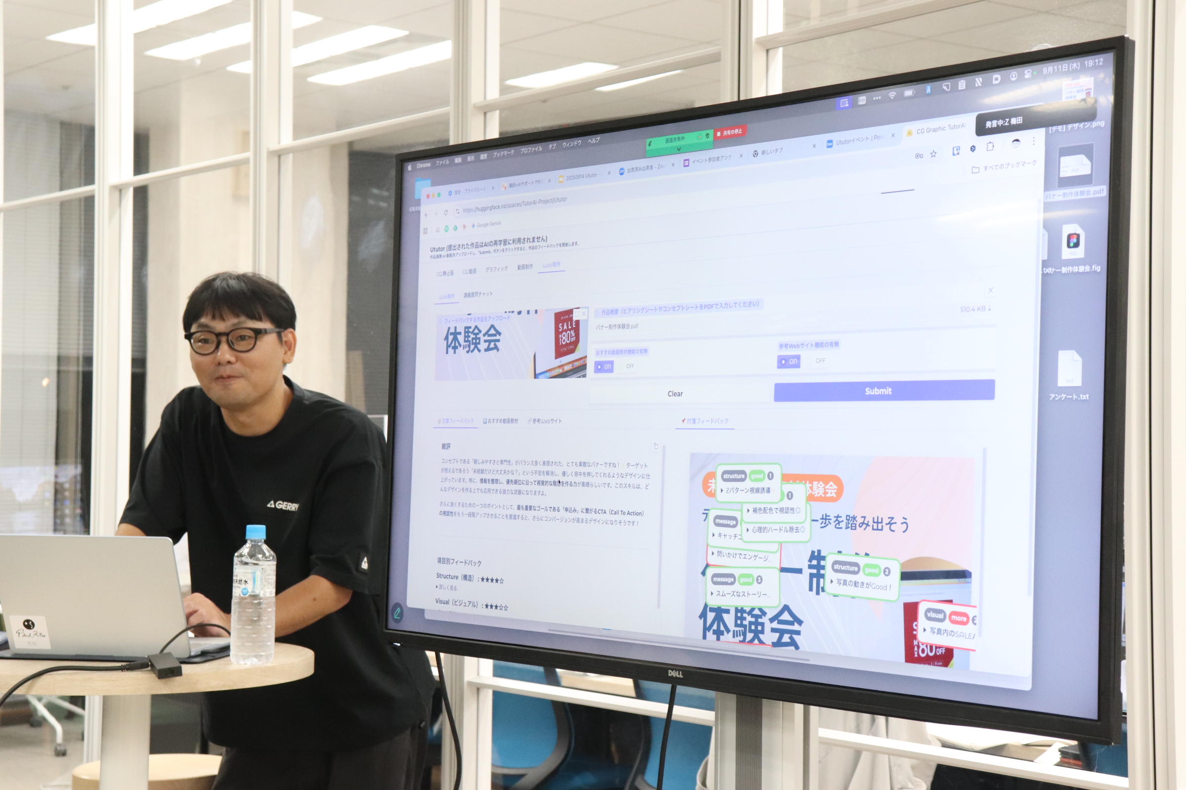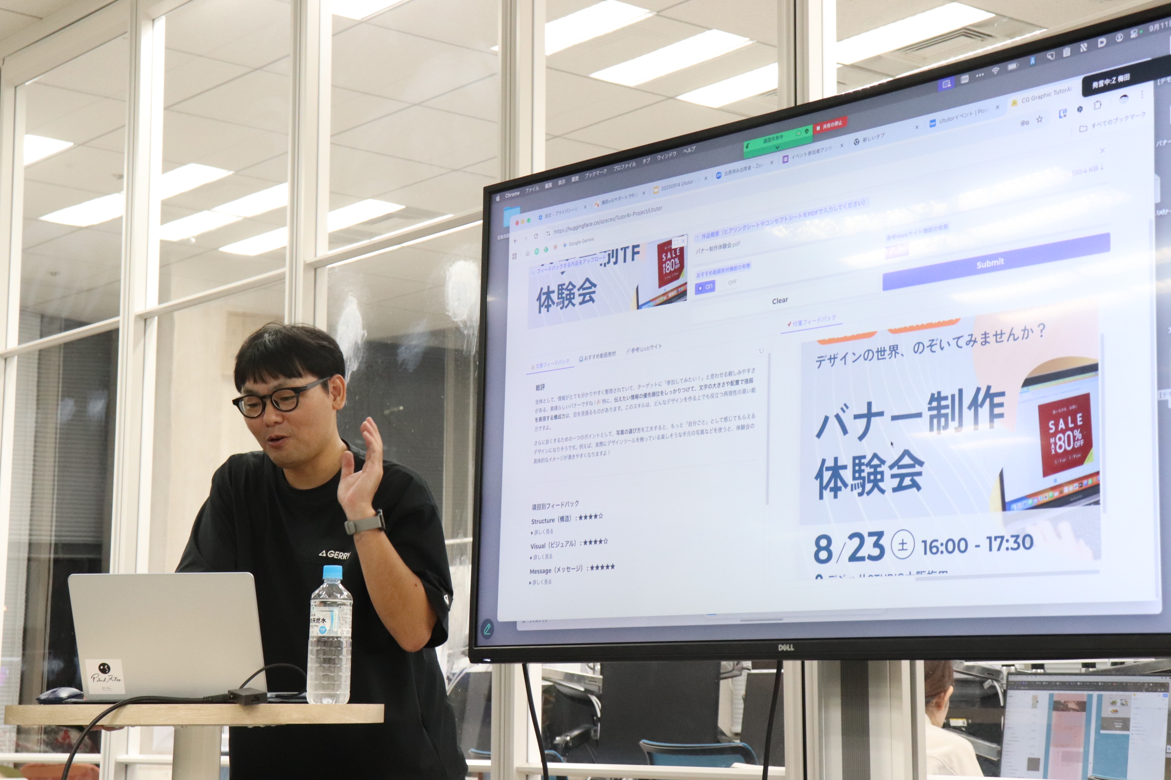 参加者がイベントバナーを制作し、その後Ututorに改善点をもらい修正した結果を発表し、改善の前後での変化を先生から総評をもらうという流れでした。