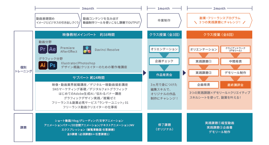 最新の映像トレンドに対応した実践的な学びを効率よく身につけられる内容になっています。