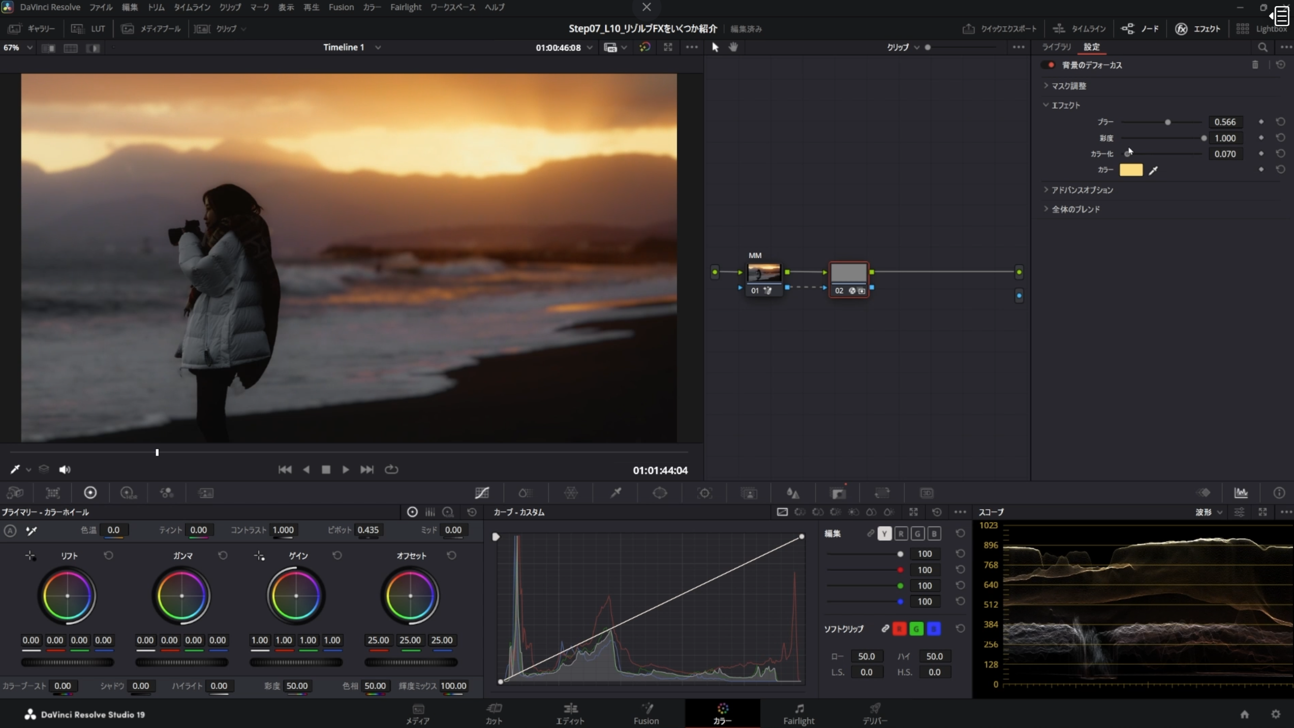 映像の雰囲気を一変させるカラーグレーディングを学べます。