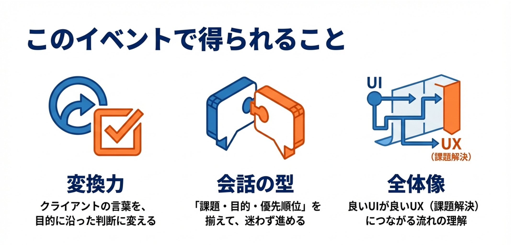 その積み重ねが 良いUX(体験)=課題解決 につながっていきます。