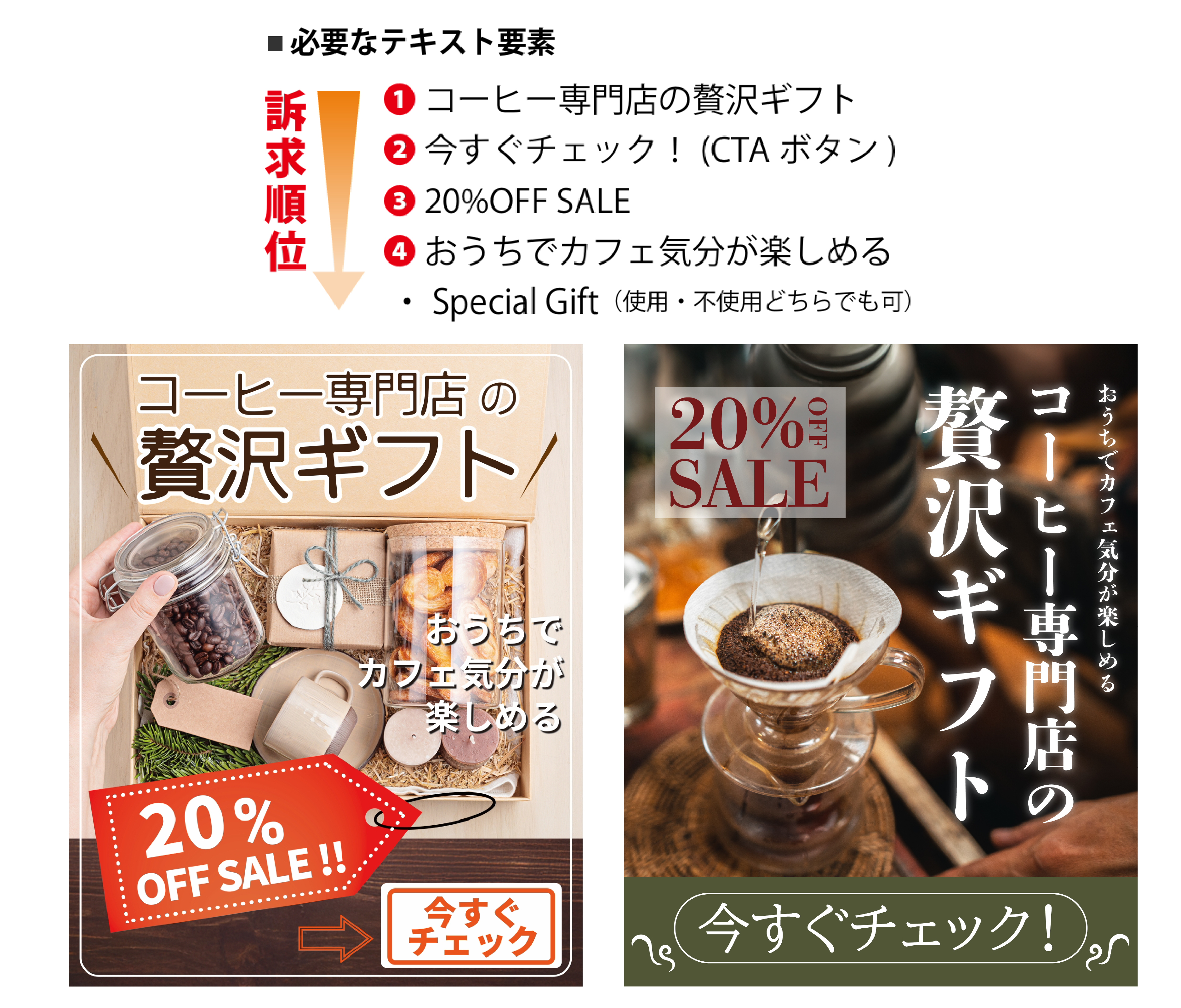 「コーヒーギフト」を購入してもらえるようなバナー広告を作成しようというお題のもと、今回はAdobe Illustratorをメインに利用しました。