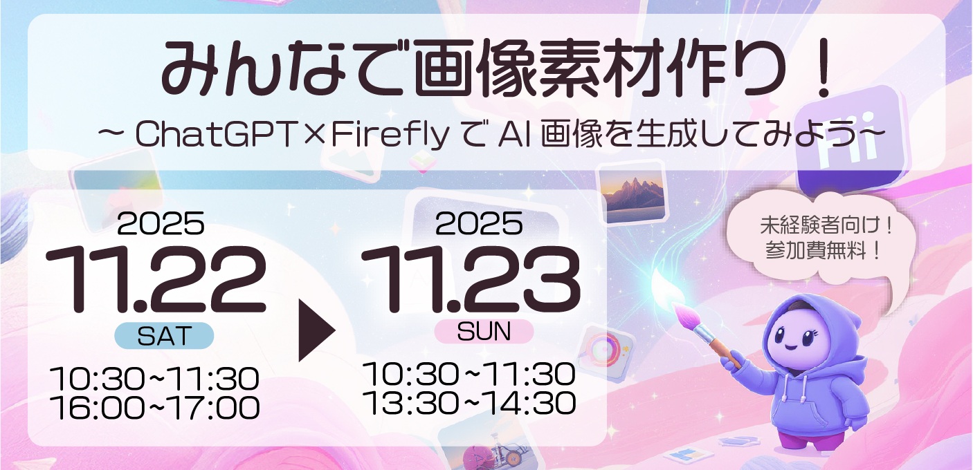 今話題の AIチャットツール「ChatGPT」 と、AI画像生成ツール「Adobe Firefly」 を使って、自分だけの画像素材を作ってみるワークショップを開催します!