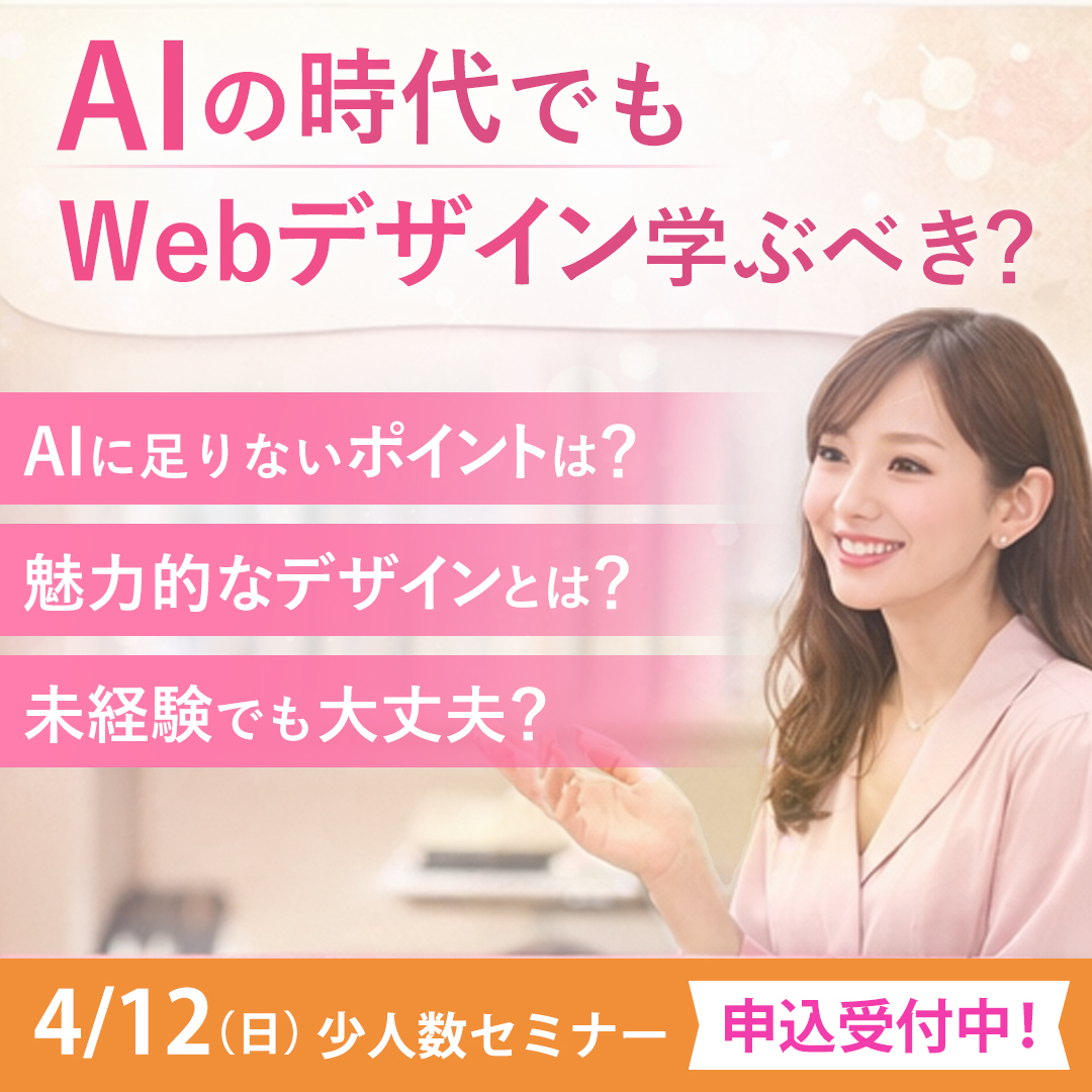 今回のセミナーでは、 AI時代にWebデザインを学ぶ意味を実演を交えながら分かりやすくお伝えします。