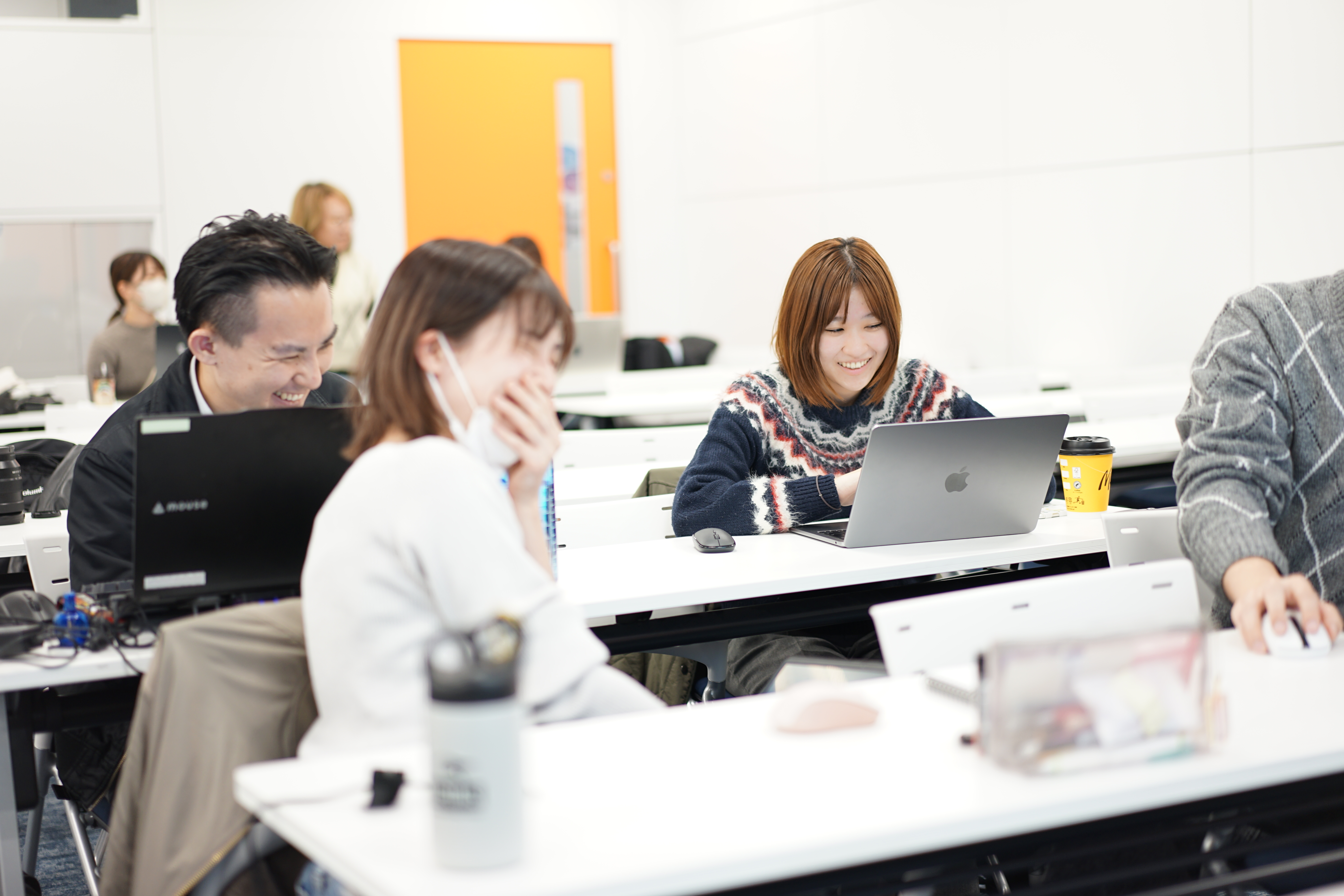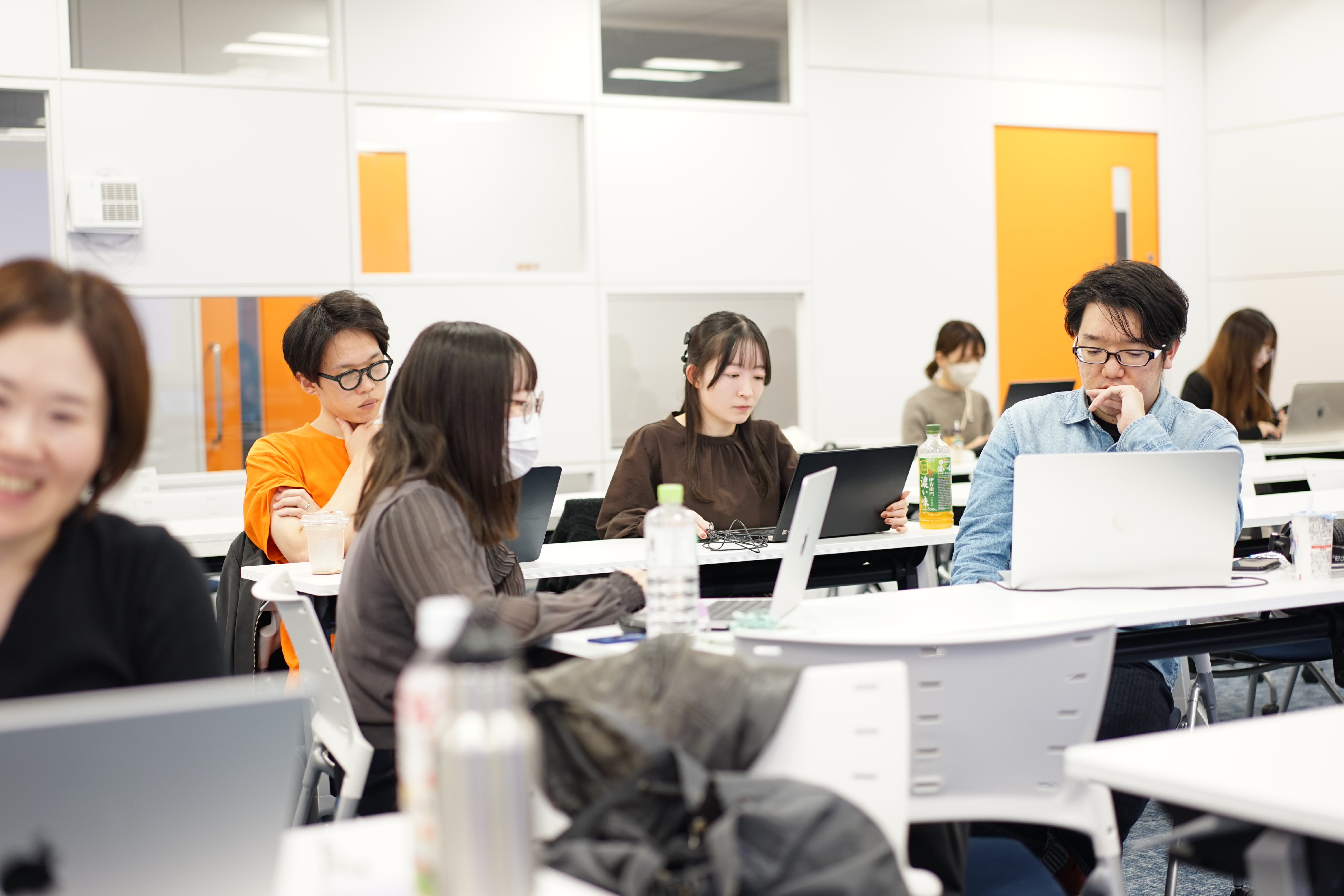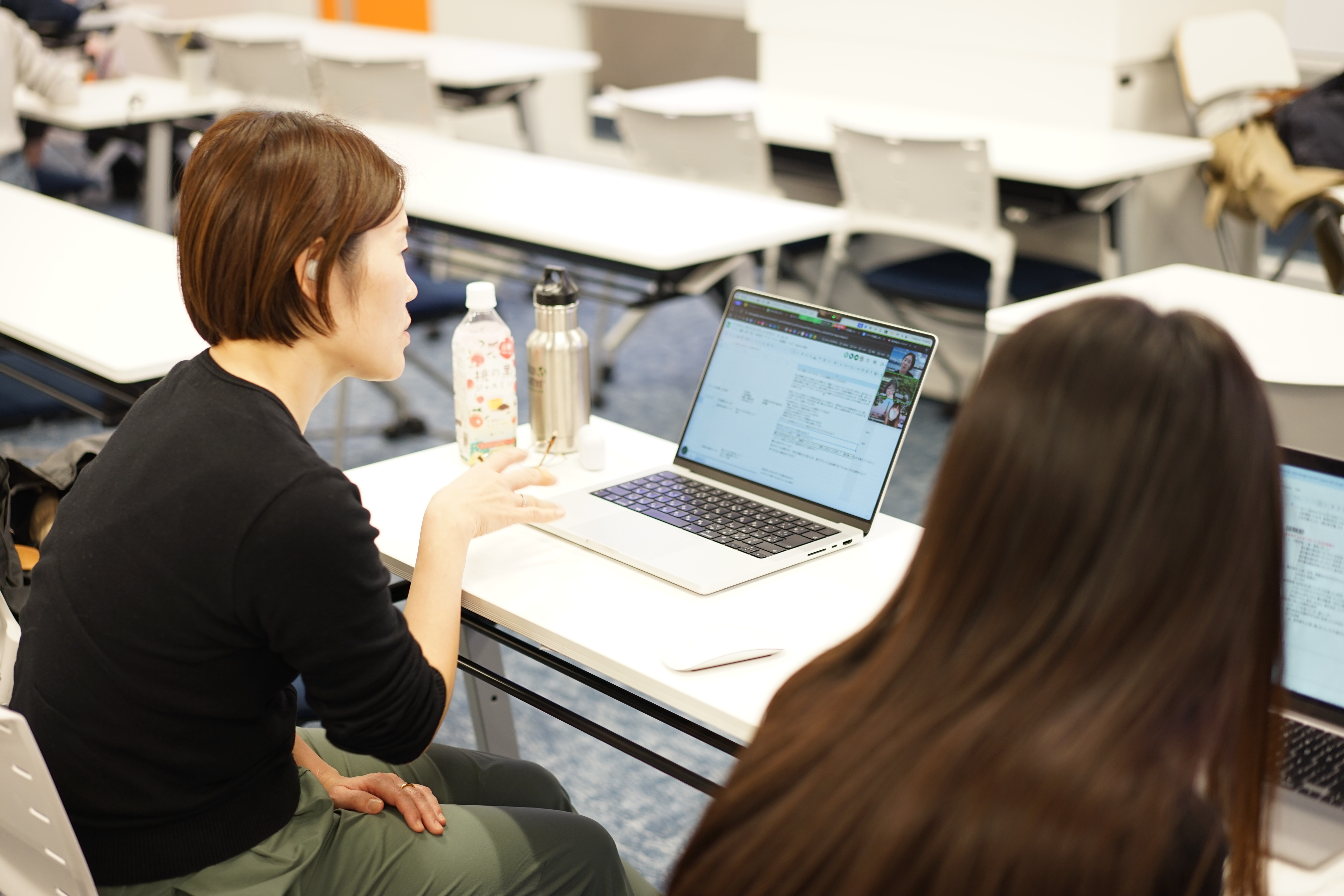 ワーク中は徳田講師やTA※が席をまわってくれているため、わからないことを聞いたり相談ができる雰囲気です。