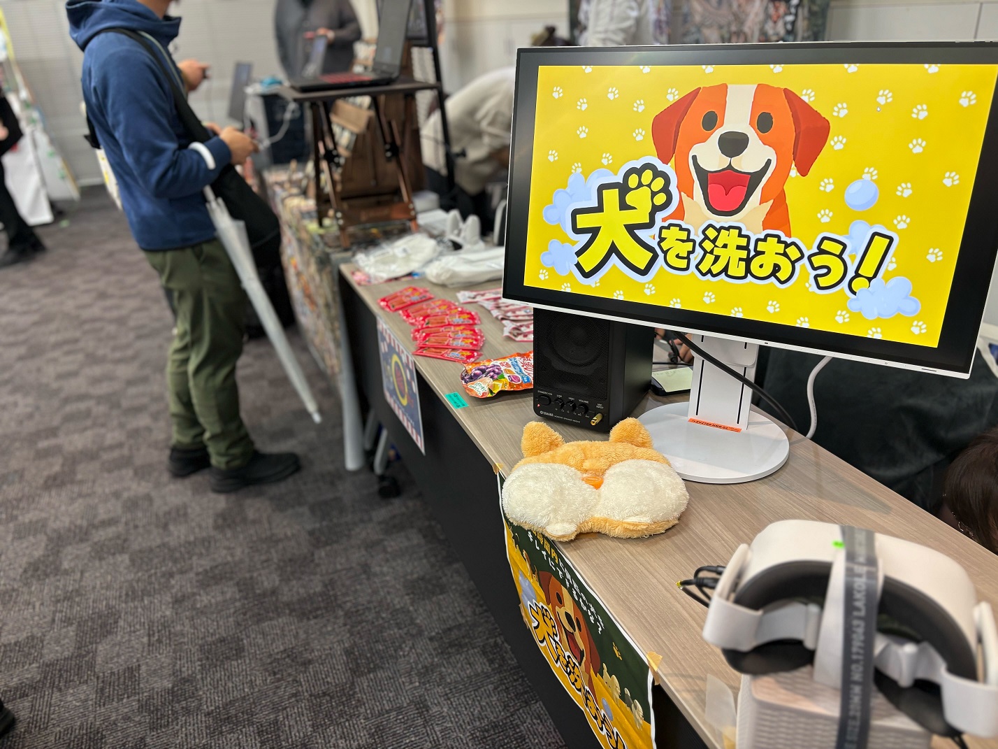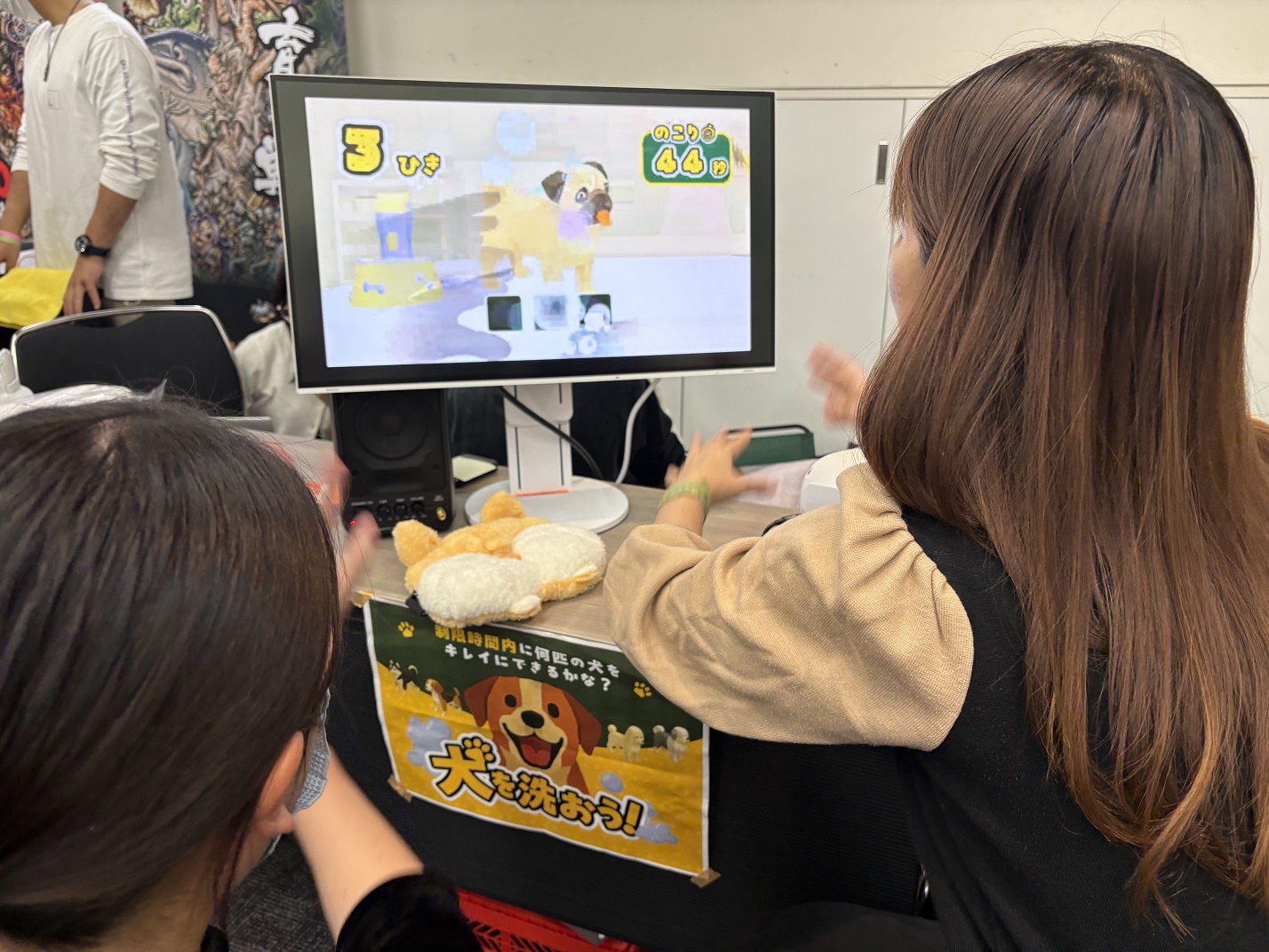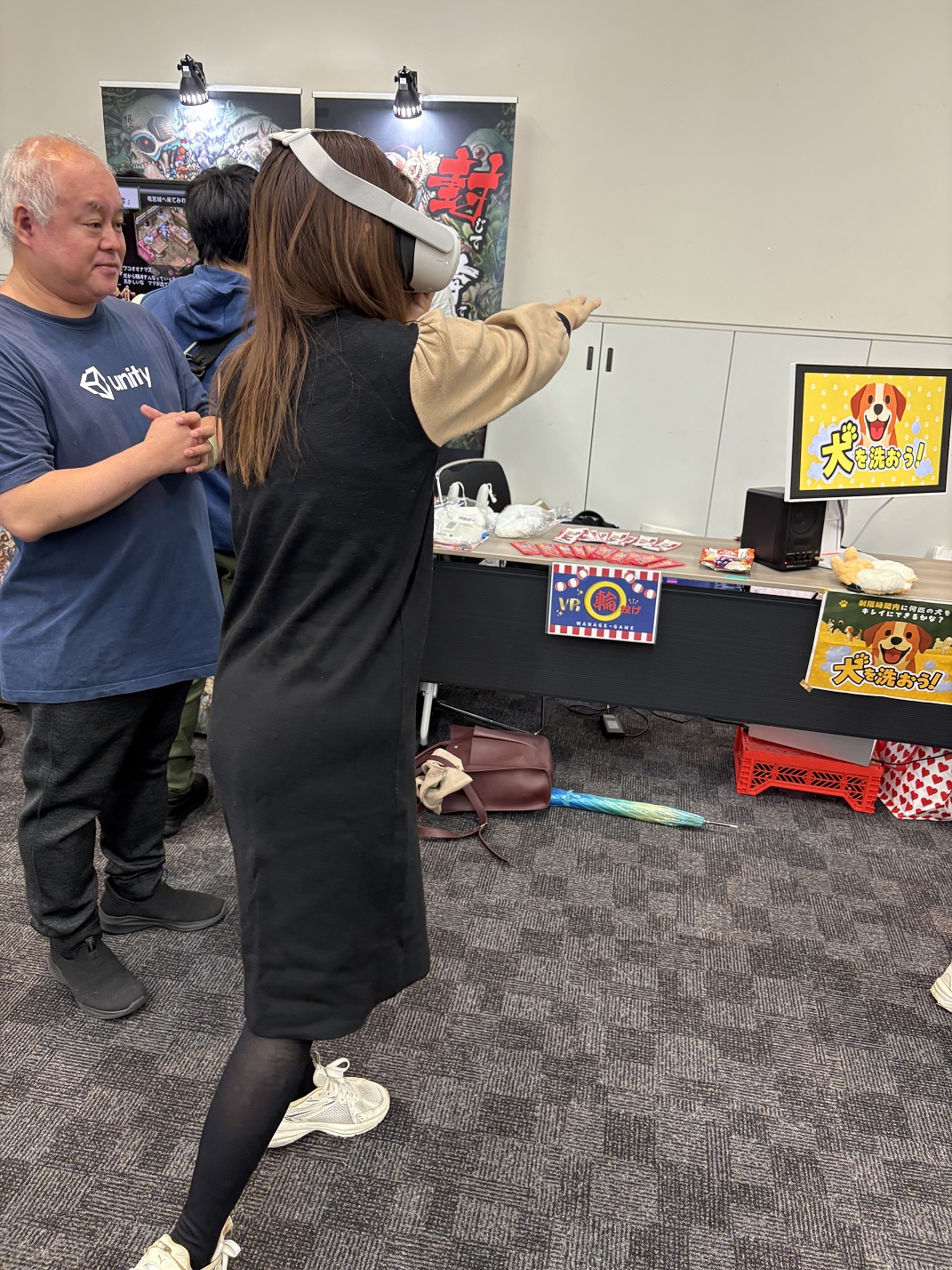 MRチームは『犬を洗おう』というゲームで、出てくるタスクに沿って犬を洗ったり、バリカンで毛を刈ったりするゲームです。制限時間内に何匹洗えるかという挑戦です。ゴーグルをせずにできるゲームに仕上がっていました。
