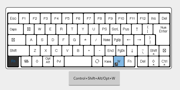 最初に、 Fn キーが押されている状態に切り替えて、右側の Alt キーを選択します。