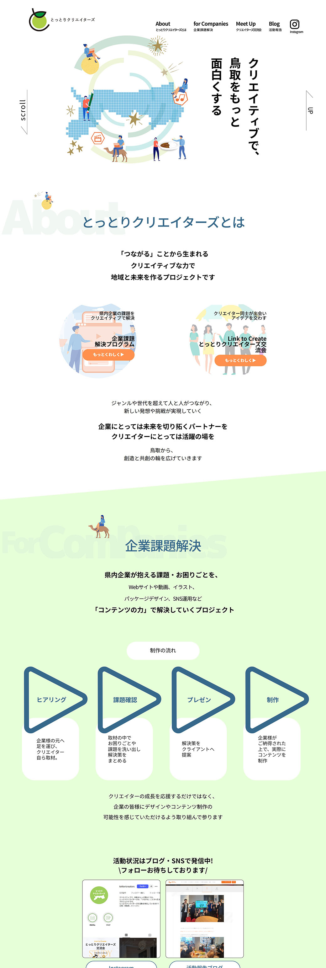 地元で活躍するデザイナー、Webクリエイター、動画クリエイター、イラストレーターなど様々なクリエイターが作品を紹介し、 皆様の課題をクリエイティブの力でサポート します。